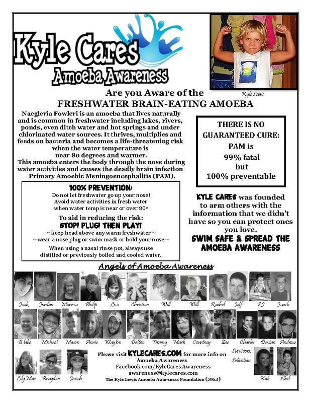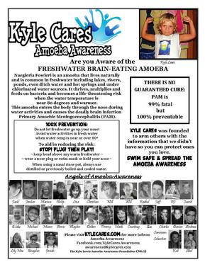 Since the foundation began in 2010, Kyle Cares has formed a great relationship with the CDC's Waterborne Disease Prevention Branch. They have provided Kyle Cares with an enormous amount of information and support and we have worked together in the mission of saving others from this amoeba.